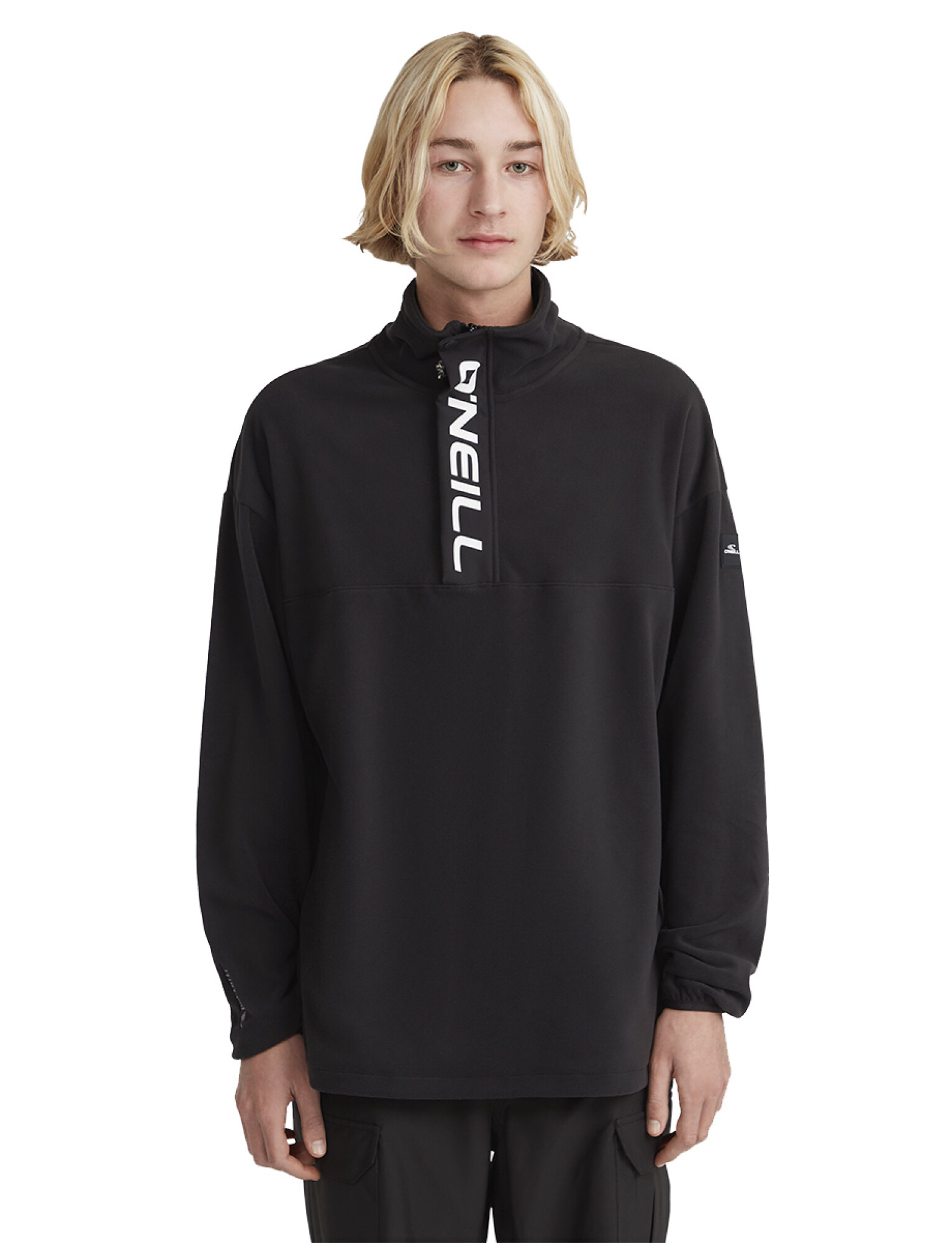 Este buzo tipo polar de O’Neill combina funcionalidad y diseño gráfico. Su construcción liviana y cálida está pensada para aportar abrigo en días frescos, mientras que el diseño en negro y el logo vertical en la parte frontal aportan una identidad de marca fuerte y moderna.