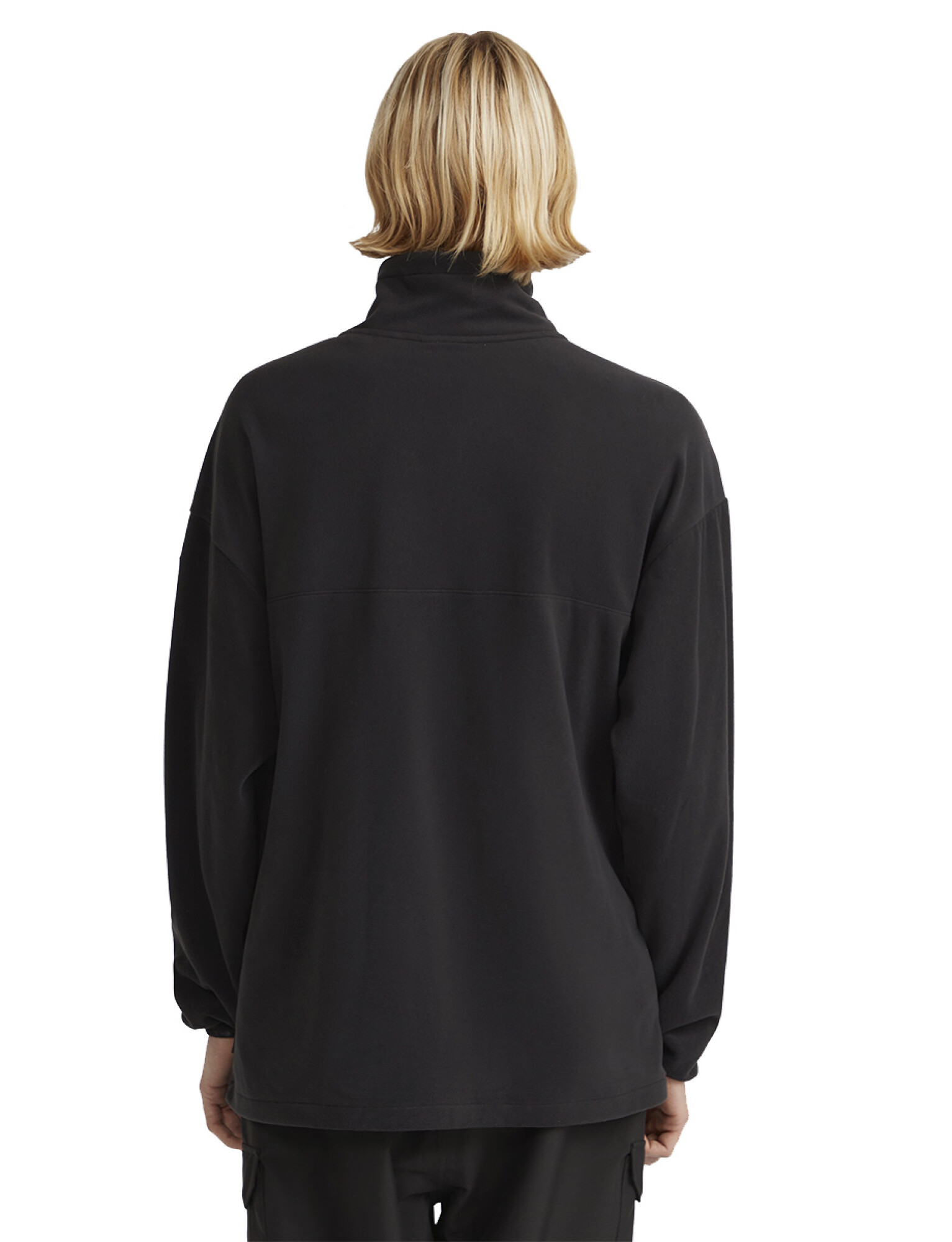 El cuello alto con media abertura permite mayor control térmico y una estética atlética, ideal para looks urbanos o capas intermedias en actividades al aire libre.