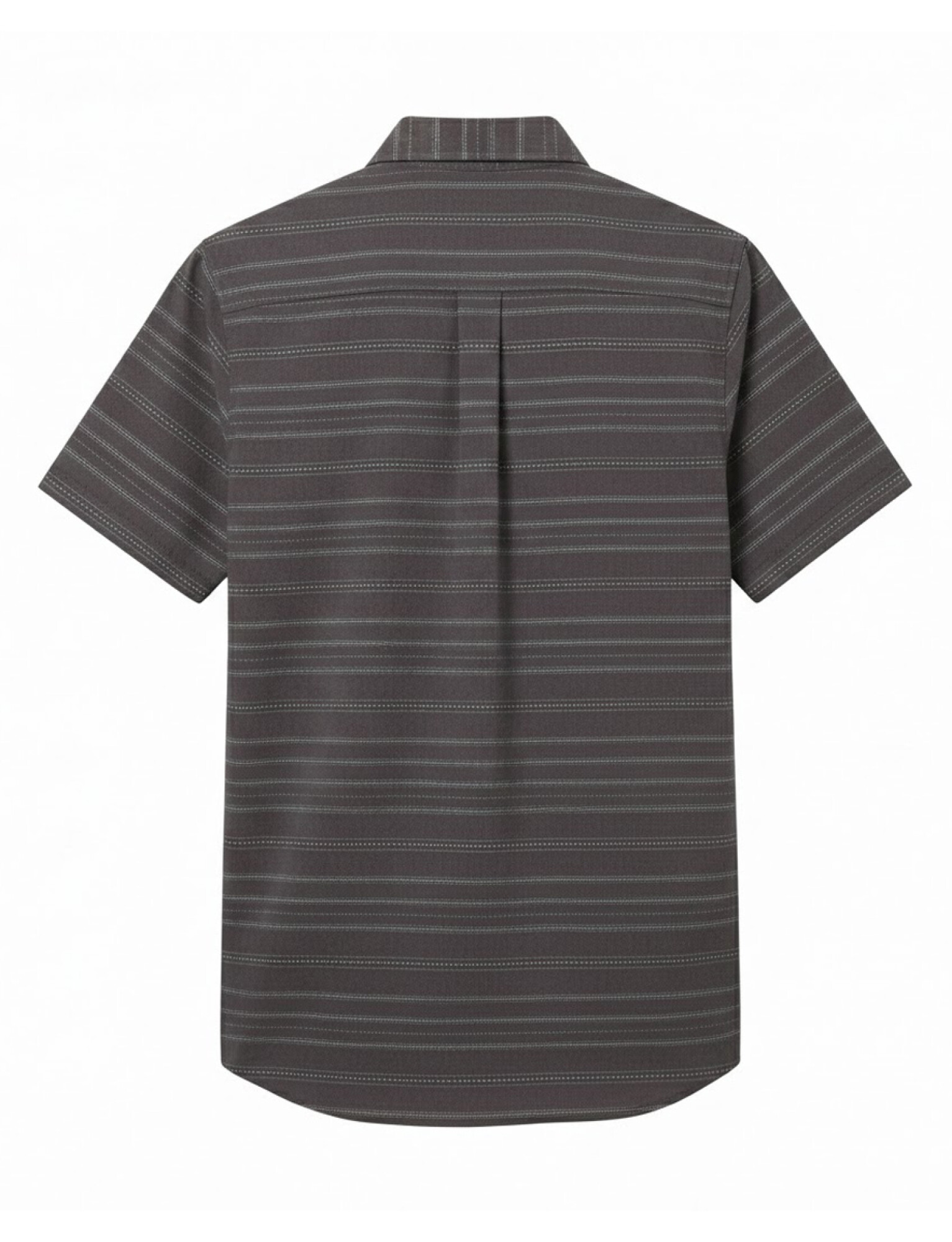 Esta camisa presenta un patrón de rayas horizontales finas que aporta textura y personalidad sin resultar llamativo en exceso. Su tono oscuro la convierte en una prenda fácil de combinar y perfecta para quienes buscan un estilo casual con carácter.
