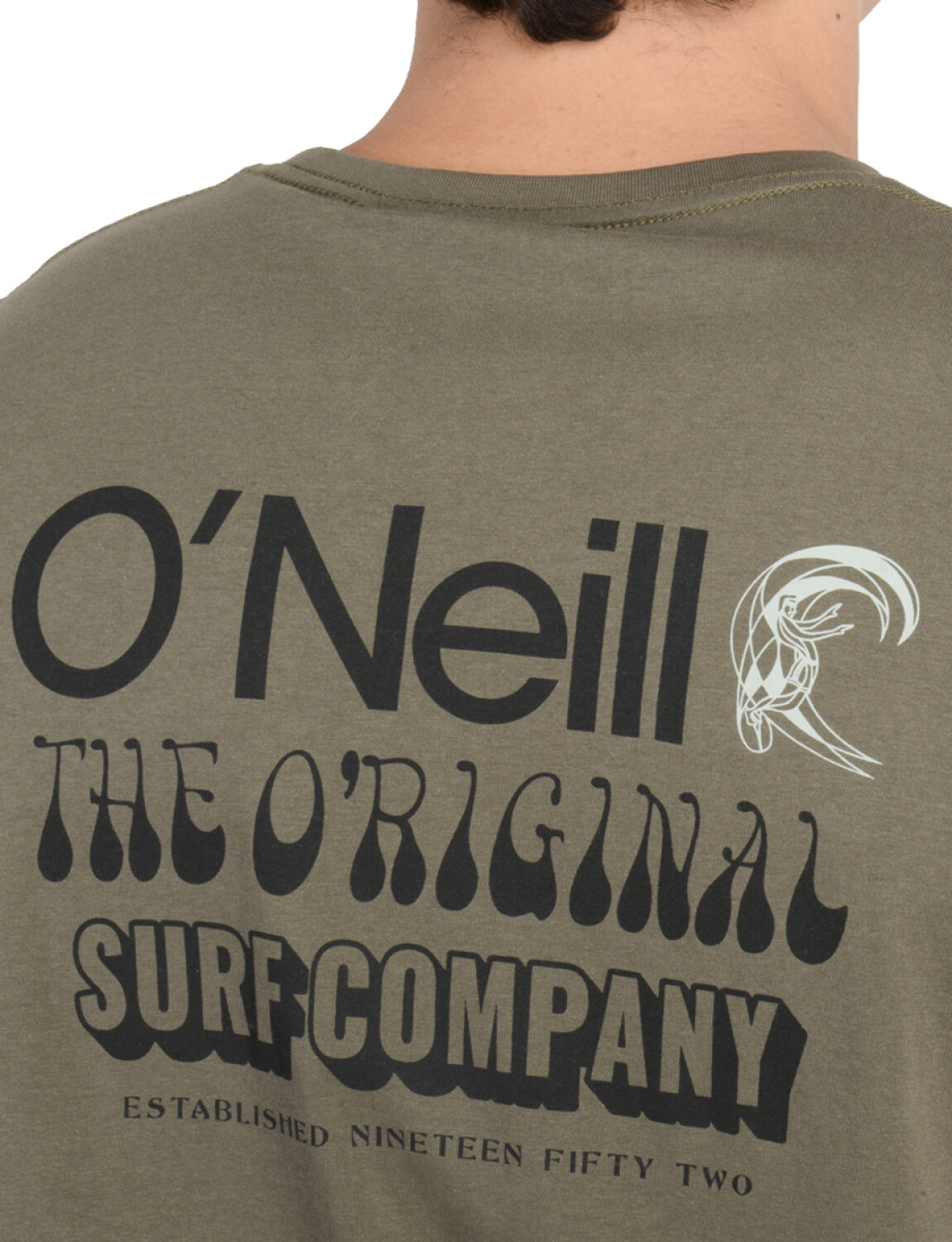 Remera manga corta con logo frontal y estampa trasera O’Neill. Estilo surf clásico, cómoda y versátil para todos los días.